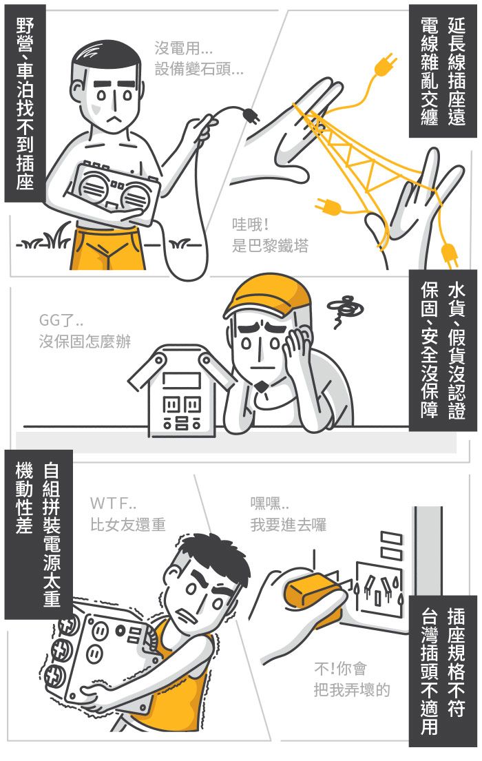 部分市售行動電源站使用“模擬弦波”,容易因電壓、電流不穩導致電器損壞,EB55野獸級戶外行動電源站使用台灣家用插座專用的「純正弦波」輸出,就像將插座搬到戶外使用般安全。