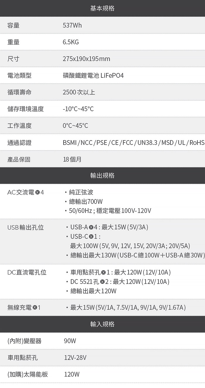 537Wh野獸級大容量 車泊、野營一台搞定
